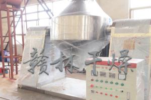 雙錐回轉真空干燥機是集混合-干燥于一體的新型干燥機。將冷凝器、真空泵與干燥機配套,組成真空干燥裝置。( 如不需回收溶劑,冷凝器可不用 ) 本機設計先進,內部結構簡單,清洗容易,物料能全部排出, 操作簡便,能降低勞動強度改善工作環境。同時因容器本身回轉時物料亦轉動但器壁上不積料,故傳熱系數較高,干燥速率大,不僅節約能源,而且物料干燥均勻充分,質量好。可廣泛應用于制藥、化工、食品、染料等行業物料的干燥。 符合“GMP”要求
